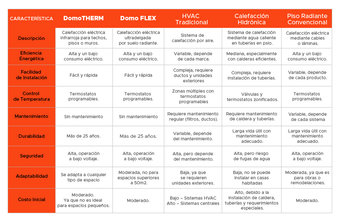 Las tecnologías de calefacción Domotherm y Domoflex ofrecen soluciones innovadoras y eficientes que se adaptan a diversas necesidades y preferencias de los clientes.